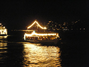 Und um Mitternacht ging es dann hoch aufs Freideck, um das Treiben an Land und zu Wasser zu beobachten.